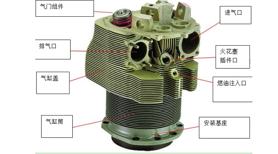 發(fā)動機(jī)中產(chǎn)生動力的部分稱為氣缸。每個氣缸是由氣缸蓋和氣缸筒兩大部分組成的總成。在組裝時,氣缸蓋通過加熱膨脹,然后擰緊在已冷卻的氣缸筒上。當(dāng)頭部冷卻和收縮并且槍管升溫和膨脹時,就會形成氣密接頭。大多數(shù)使用的氣缸都是以這種方式構(gòu)造的,使用鋁合金氣缸蓋和鋼制氣缸筒。