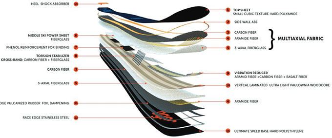 在制造滑雪板時(shí),僅添加了1%重量的Haydale石墨烯樹脂機(jī)械增強(qiáng)填料,滑雪板組件為50% UHMWPE,20%碳纖維,15%木芯,15%鋼
