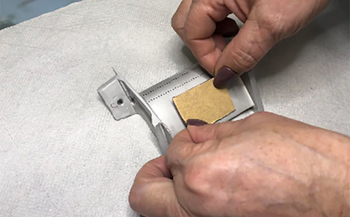 用于包覆膩?zhàn)踊蚰z帶的葉片部件放在工裝夾具中后,填補(bǔ)部件與夾具之間的縫隙,以防止涂層蒸汽滲透到葉片根部區(qū)域,適用于大的工裝夾具。